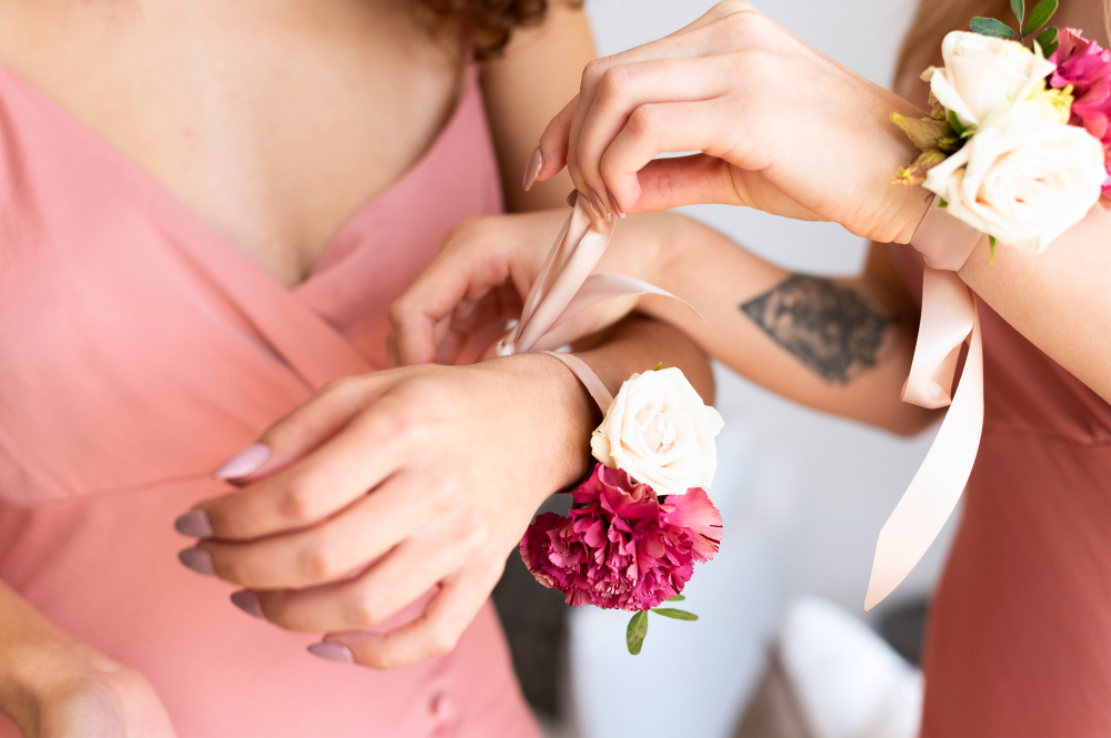 Сватбените гривни са елегантен и практичен аксесоар, който заменя традиционните бутониери за шаферките. Те придават завършеност на визията и се превръщат в красив спомен от специалния ден на нашите младоженци. Всяка гривна създадена от нас е уникална и създадена с мисъл за хармония и стил.