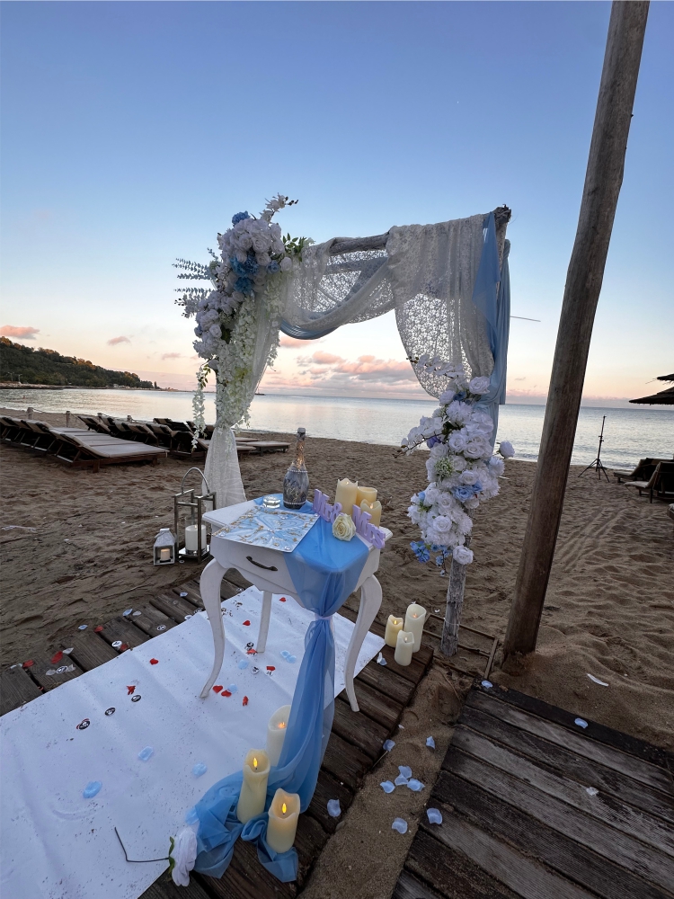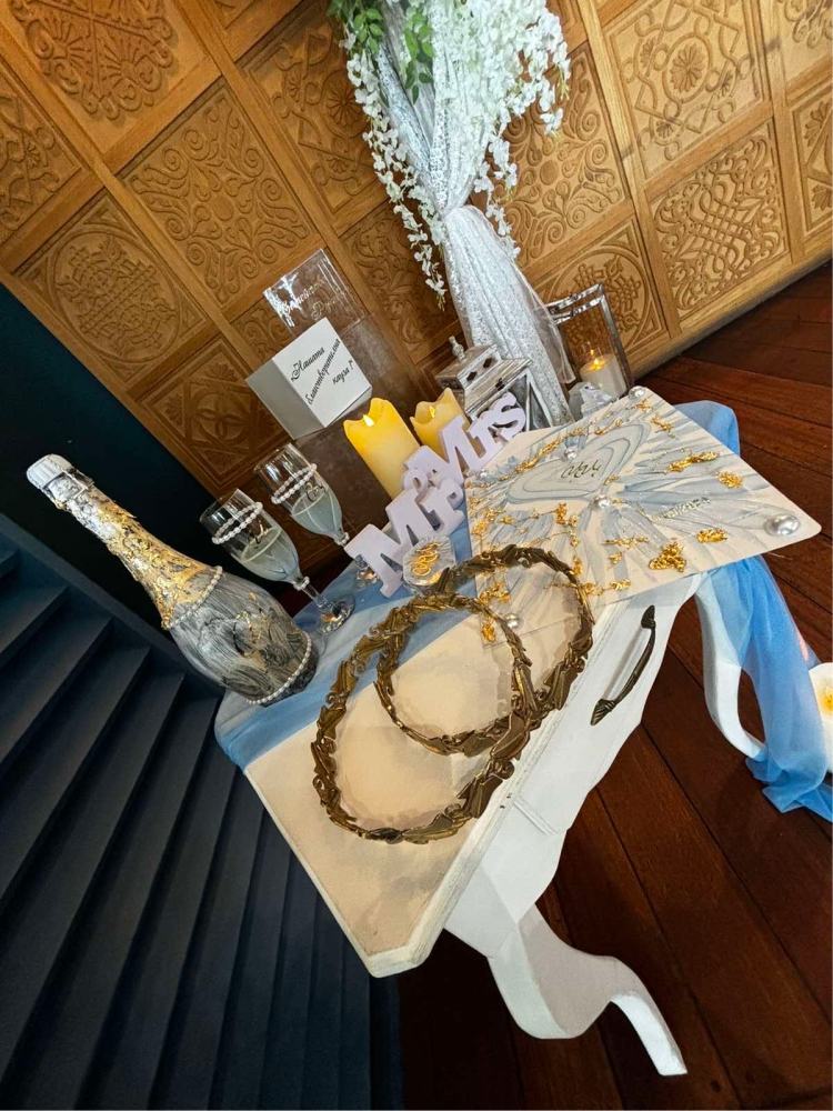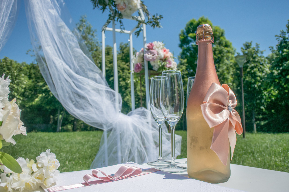 “Наздравица с елегантност ". Първата наздравица е един от най-емоционалните моменти в сватбения ден. Затова бутилката шампанско и чашите трябва да бъдат не просто аксесоари, а стилни акценти, които допълват магията на събитието. С нашите услуги за аранжиране вашия тост ще бъде не само вкусен, но и визуално впечатляващ.